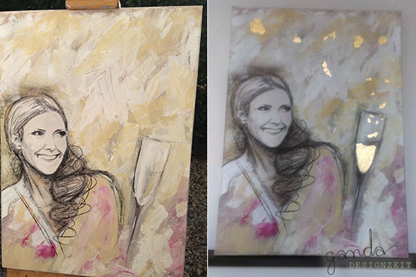 Und? Hab ich gemacht, nach so langer Zeit habe ich es mal wieder gewagt und meine Malutensilien herausgeholt. Ich hätte nicht gedacht, dass ich es auf Anhieb wieder hinkriege. Eine gewisse Hemmschwelle war schon da … Ich wollte ein Portrait malen und habe mich für die Kombination Acryl, Kohle und Blattgold entschieden.