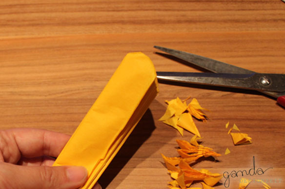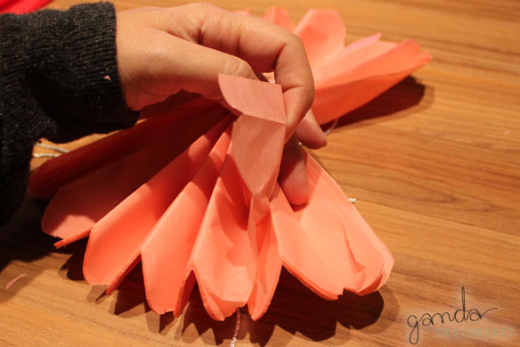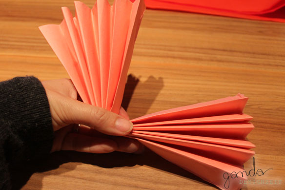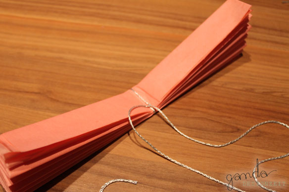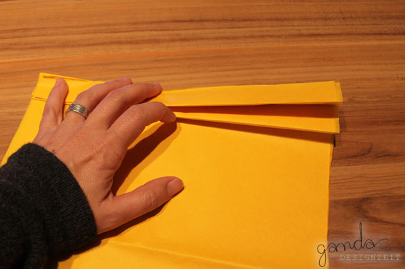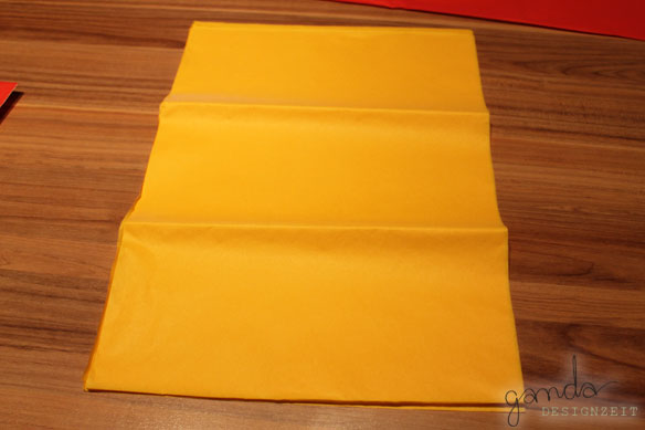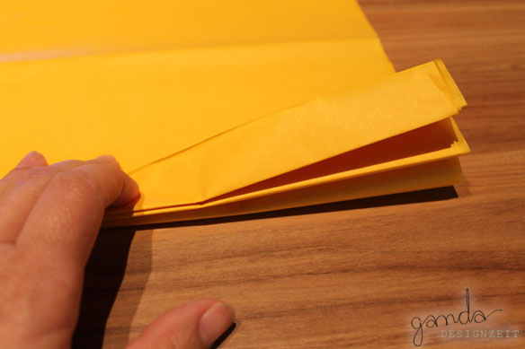 8 Bögen aus Seidenpapier werden übereinander gelegt. Es ist der gleiche Prinzip als ob man einen Fächer faltet: