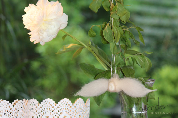 Das hier hat meine Kleine vom Kindergarten mitgebracht: Pfingstvogel aus Wolle.