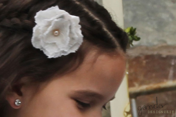 Die Filzblumen als Brosche und Haarschmuck für meine Tochter, mit einer echten Perle bestickt!