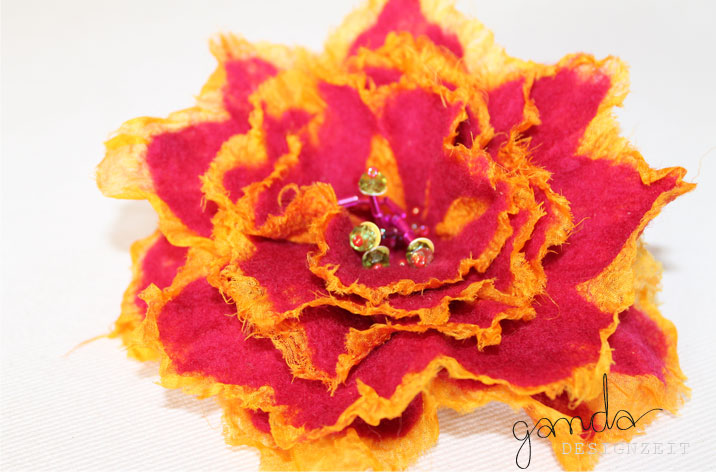 *Ansteckbrosche aus Seide und Filz* Ein kleiner Vorgeschmack: ein Hochzeitswunsch von einer Freundin in Rot/Pink/Orange wurde erfüllt!