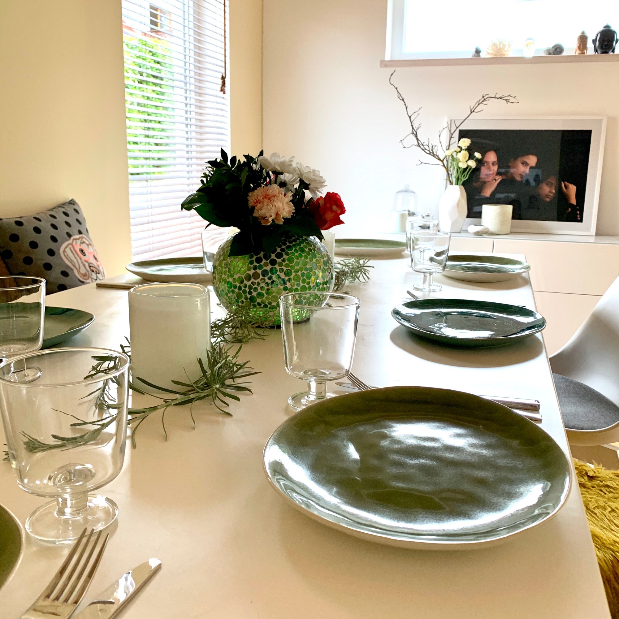 Eigene Blumen aus dem Garten (endlich!) und leckere Zucchini Röllchen für ein Geburtstagskind letzten Montag …
