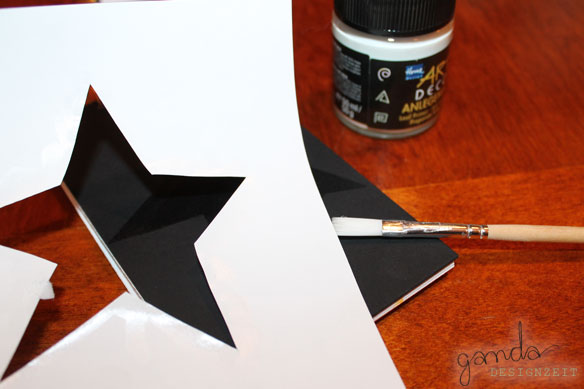 Tomorrow I’m doing then top coat on the stars, so that the gold is protected. A nice effect on the black cardboard.